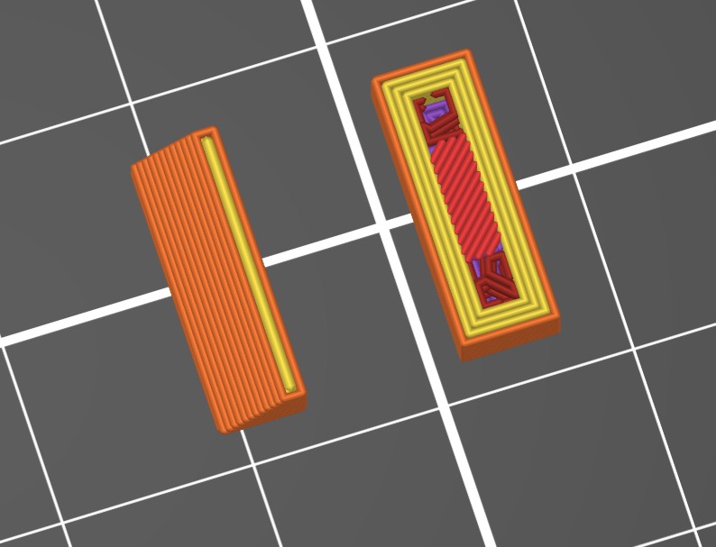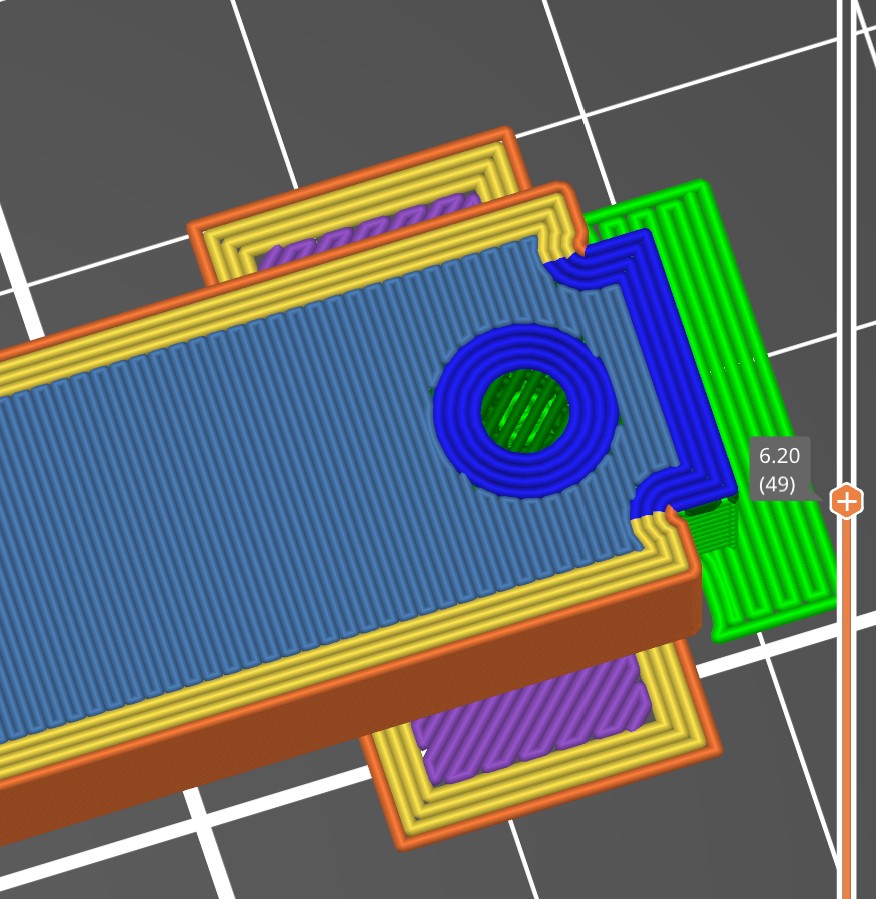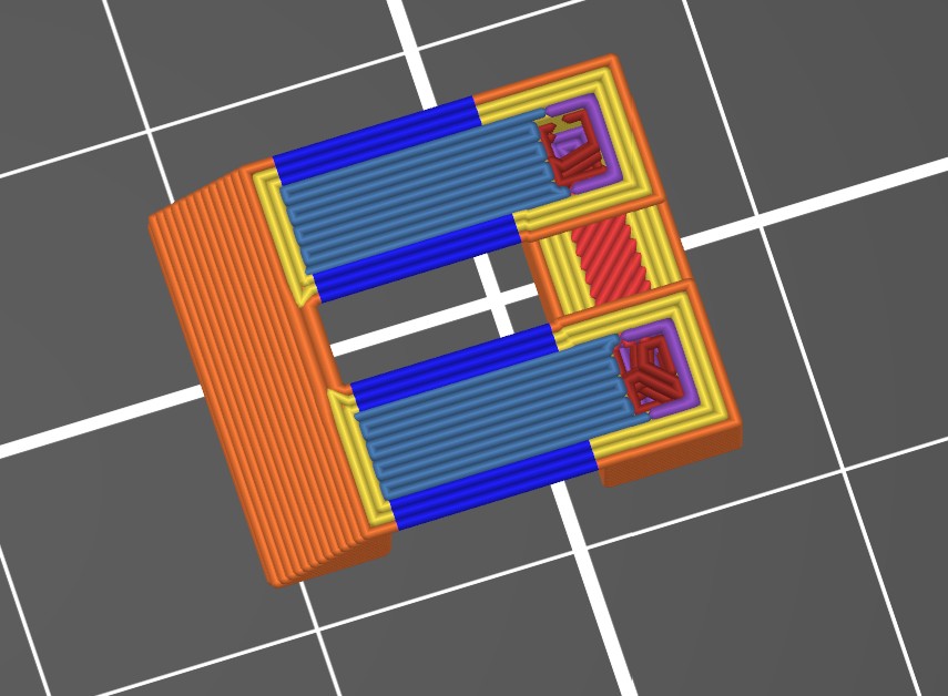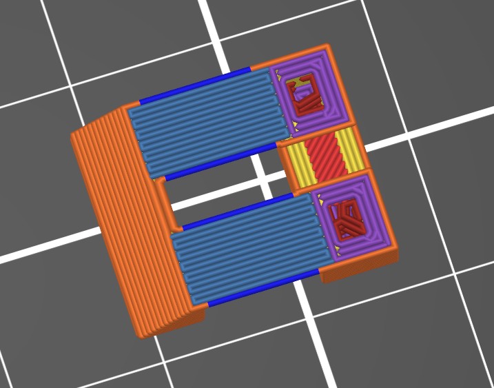 In this picture, Multiple profiles cause the ends of bridging moves to not overlap or connect well on the left side. The bridging moves only connect on the sides on the left. This ends up in a birds nest appearance after printing since many bridging ends on the left do not attach. To get the bridging to work as shown above, the 3 perimeter setting was changed to a single perimeter for the bridging layer only.