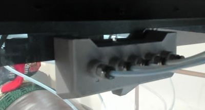 This allowed me to put the MMU2S PTFE cables through the enclosure and manage the cables with the MMU2S in the horizontal position better. This picture is taken from the inside of the enclosure. Only 1 PTFE pneumatic fitting is needed on one side or the other. The 10mm fitting will let the 4mm OD tube pass all the way thru. I put mine on the inside, this prevents the PTFE tube being pulled into the enclosure more. I later found feeding the MMU thru the back was a better for me.