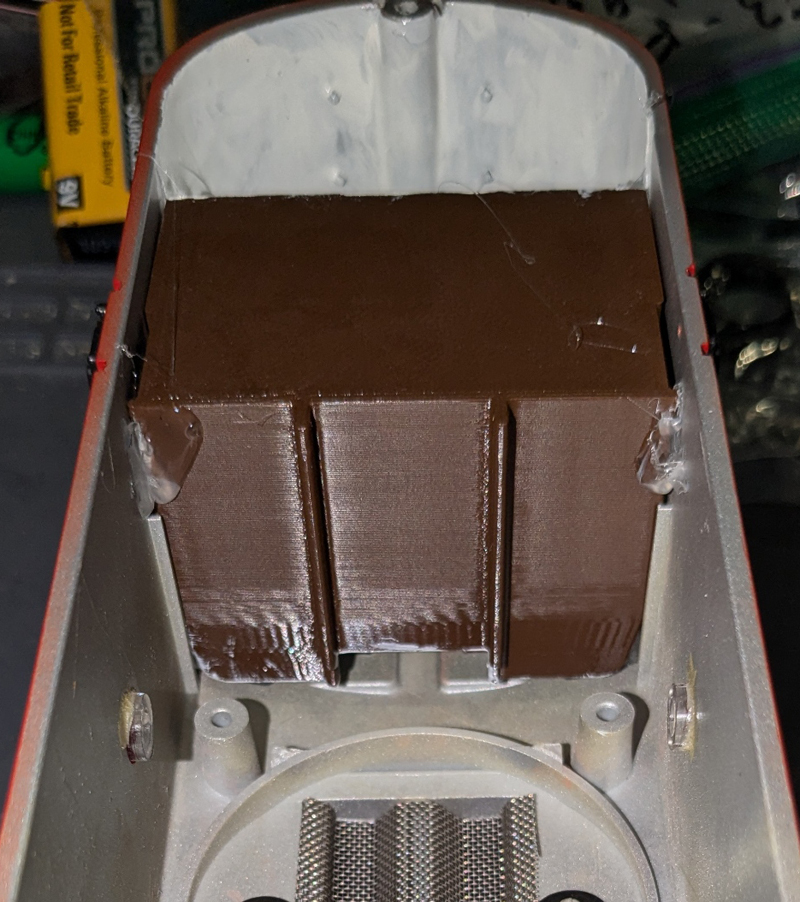 White paint used to help reflect the light back into the interior. Holes in the front of the interior are to allow more light in to highlight the interior and engineer figures.