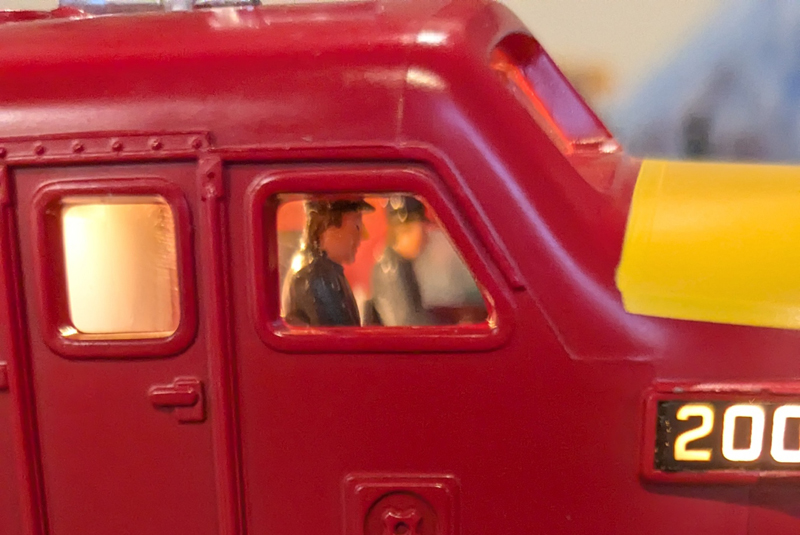 Interior installed with some hot glue used to hold the marker lights in place. Headlight is optional, it is not installed here. Similar to the side markers, it would be held with Hot Glue. Lionel has used hard industrial grade hot glue to assemble the rear top piece to the shell.