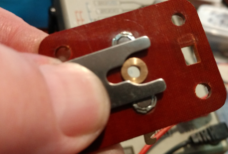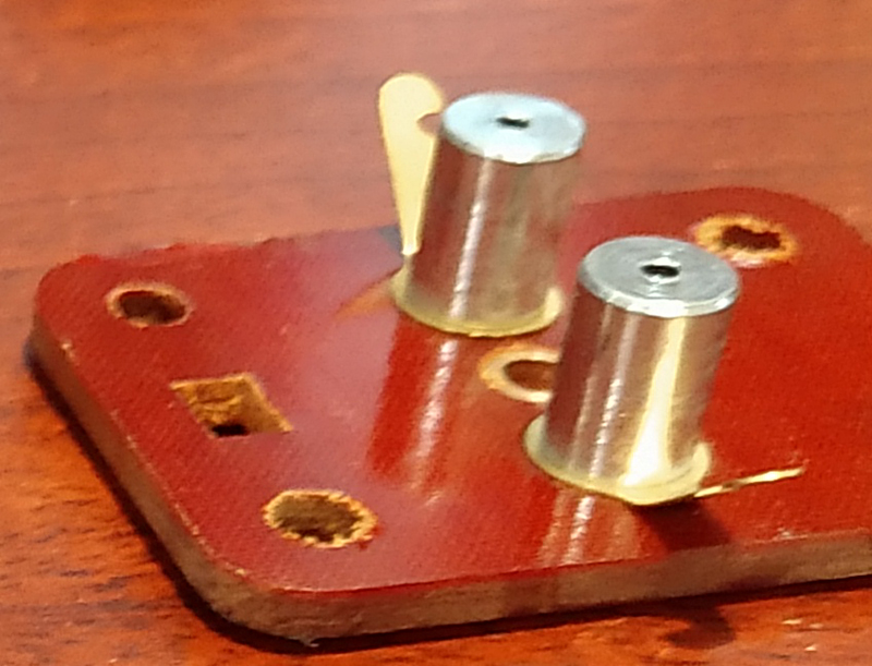 The arrows above show where the small copper tabs are that are attached to the copper plate. If one or both are broken the plate will move sideways and not make a good contact at the "points"