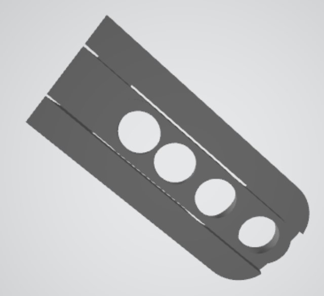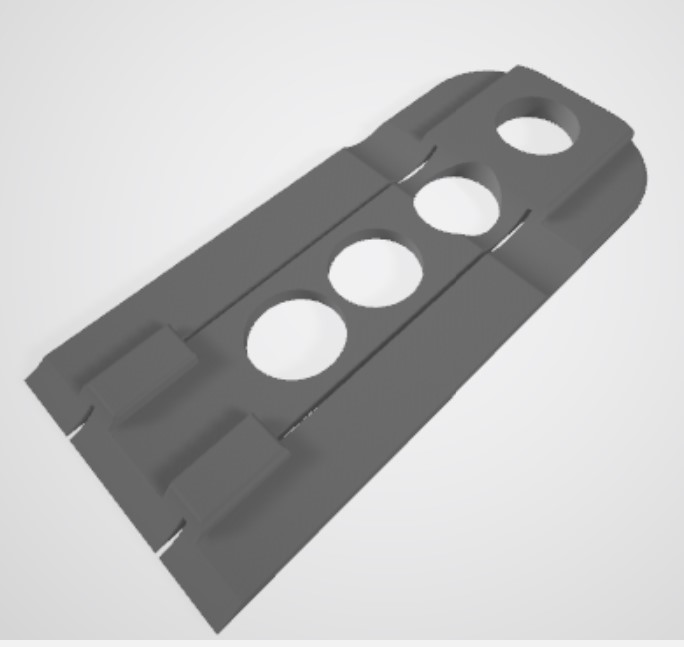 The Design for the Truck. Updated June/2023. From the top. The area for the wheels are set to the wheel base of the truck. Printed with a .3mm layer height. Black to match the Car Carrier. The area under the rear wheels is .020"/0.5mm thick. Enough for some strength, but keeps the car at original height. The front area is not to a point, but 020"/0.5mm also. The slots for the flanges are .030"/.75mm wide With 3D printers, putting radii on all the edges is easy also. A few holes to save material, but not much printing time. Cutout areas to clear details under the vehicles. Top and bottom view of the chock design. The sides were the wheels sit are kept low so the car rolls into the lower part of the carrier without hitting the top.